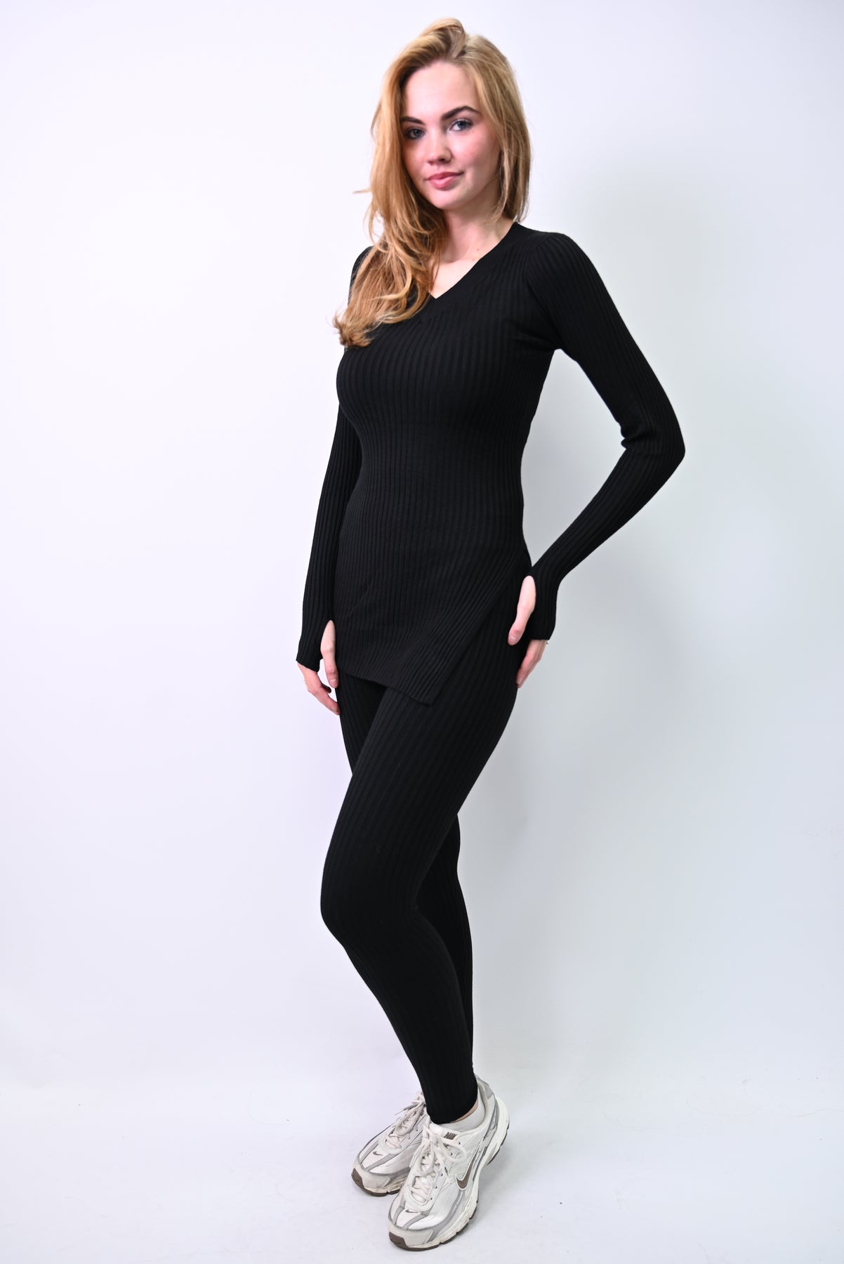 Minimalisme met een fluistering van kracht—Nuit Sculptée is een zwarte ribgebreide set die het lichaam omhult als een schaduw in beweging. De diepe tint en strakke lijnen creëren een silhouet dat zowel sportief als sensueel is. Voor momenten waarop je niet hoeft te spreken om op te vallen.