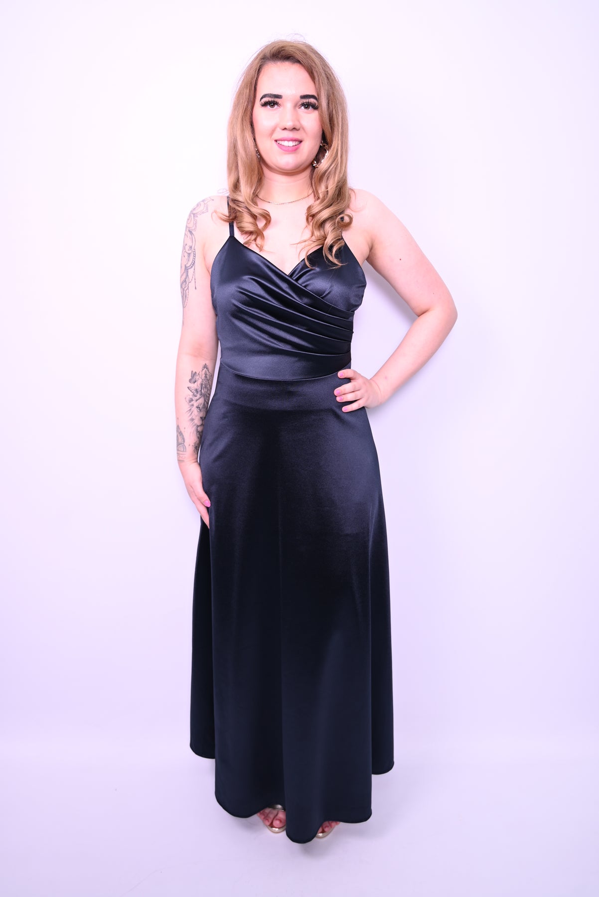 Lichaamsgedicht is een lange satijnen avondjurk die het lichaam omhelst met elegantie en attitude. De jurk heeft een diepe V-hals, dunne schouderbandjes en een hoge split die het been subtiel onthult. De glanzende stof vangt het licht en accentueert elke beweging. Perfect voor gala’s, bruiloften, cocktailavonden of een stijlvolle entree.