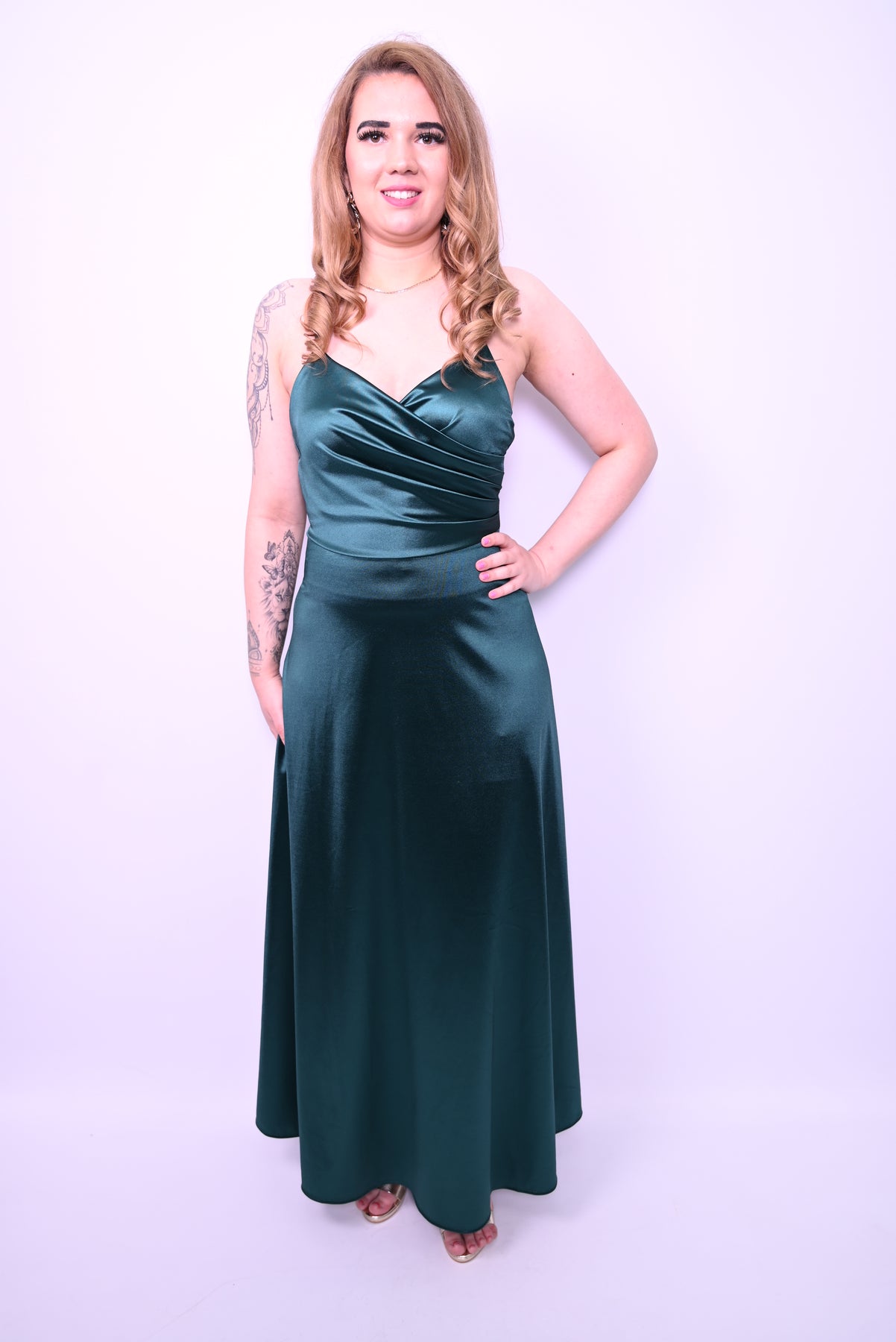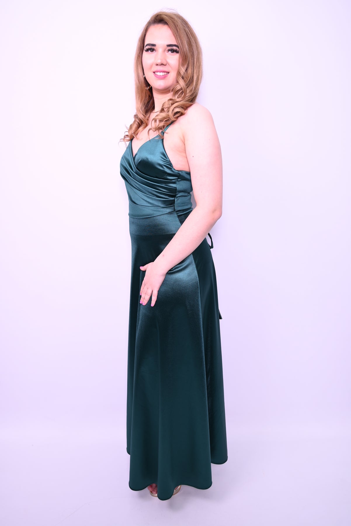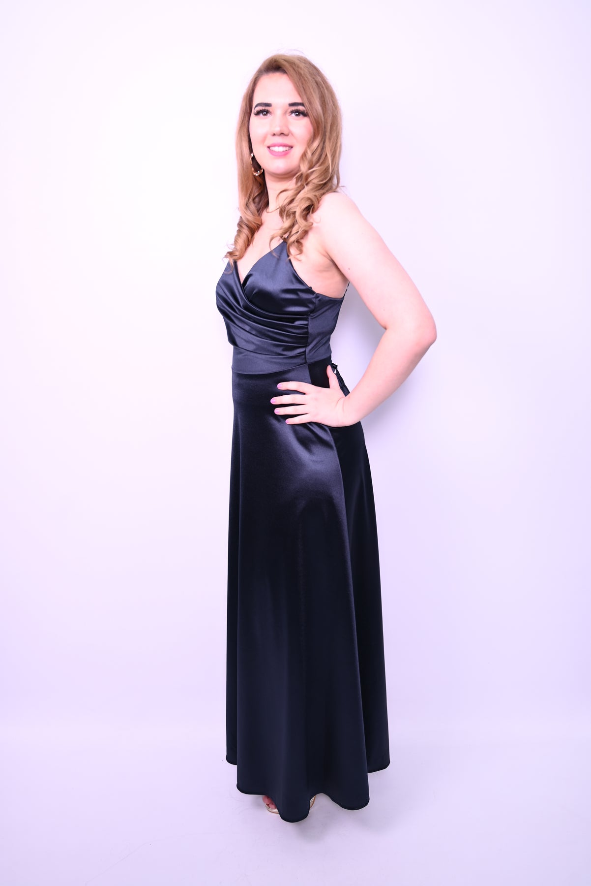 Lichaamsgedicht – Satijnen avondjurk met diepe V-hals en split 5888