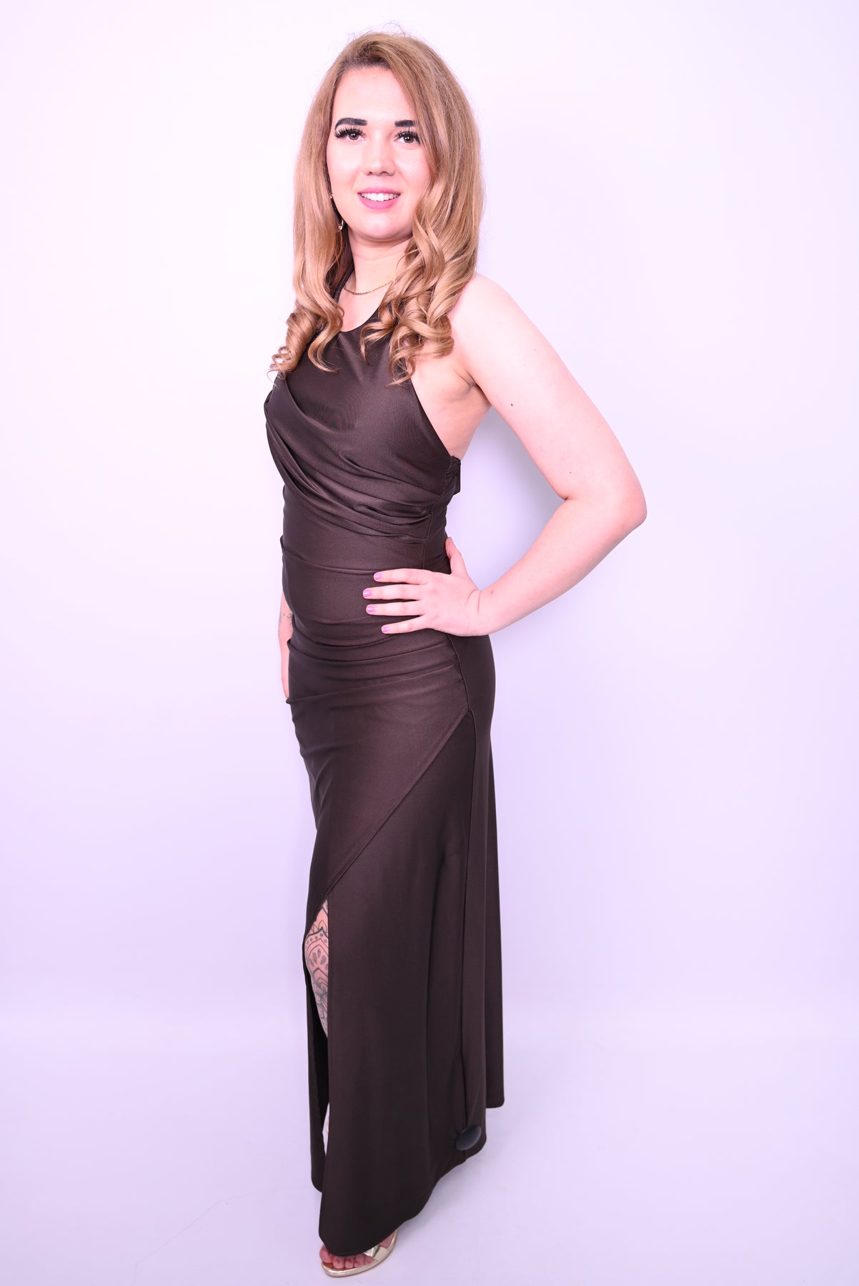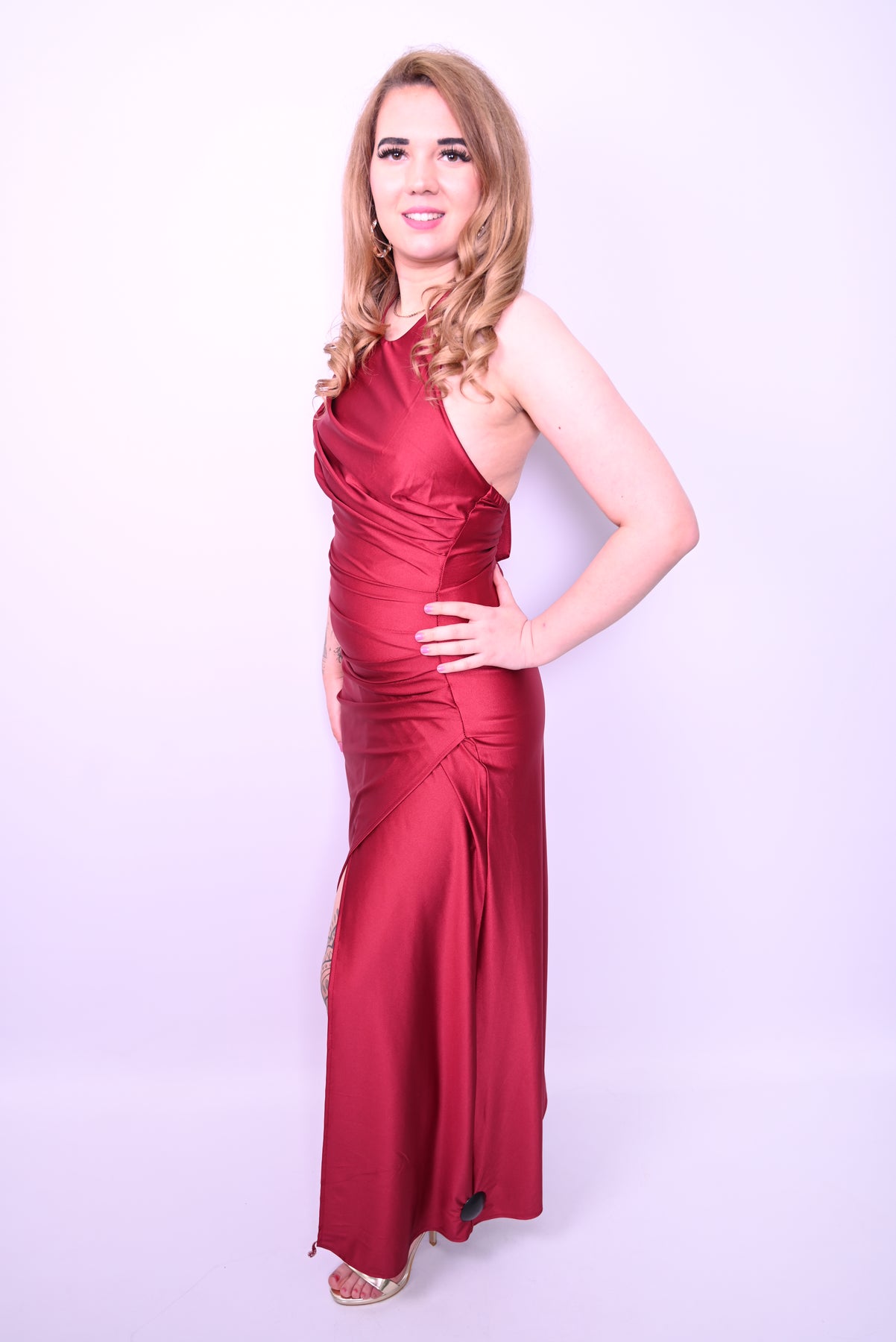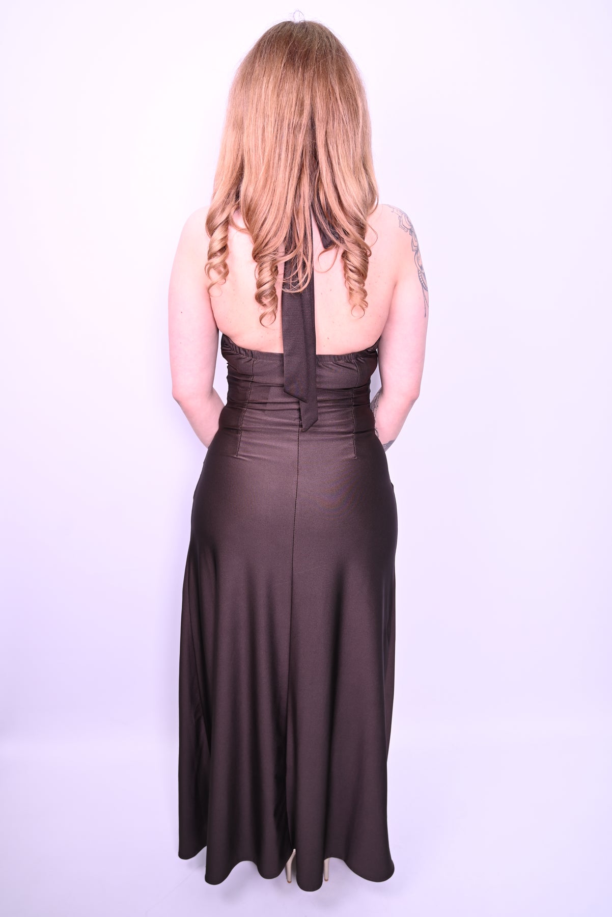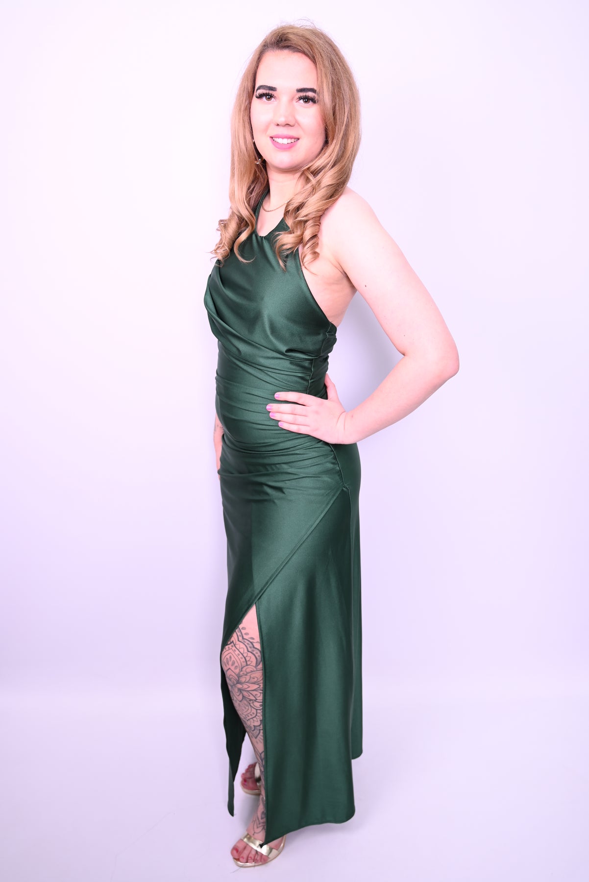 Lichaamsgedicht is een lange avondjurk die het lichaam omhelst met elegantie, attitude en een vleugje rebellie. De jurk is gemaakt van glanzende satijnstof en heeft een diepe V-hals, een hoge split en een nauwsluitende pasvorm die het silhouet accentueert. De zichtbare tattoos versterken de persoonlijke stijl en maken van deze jurk een krachtig mode-statement.
