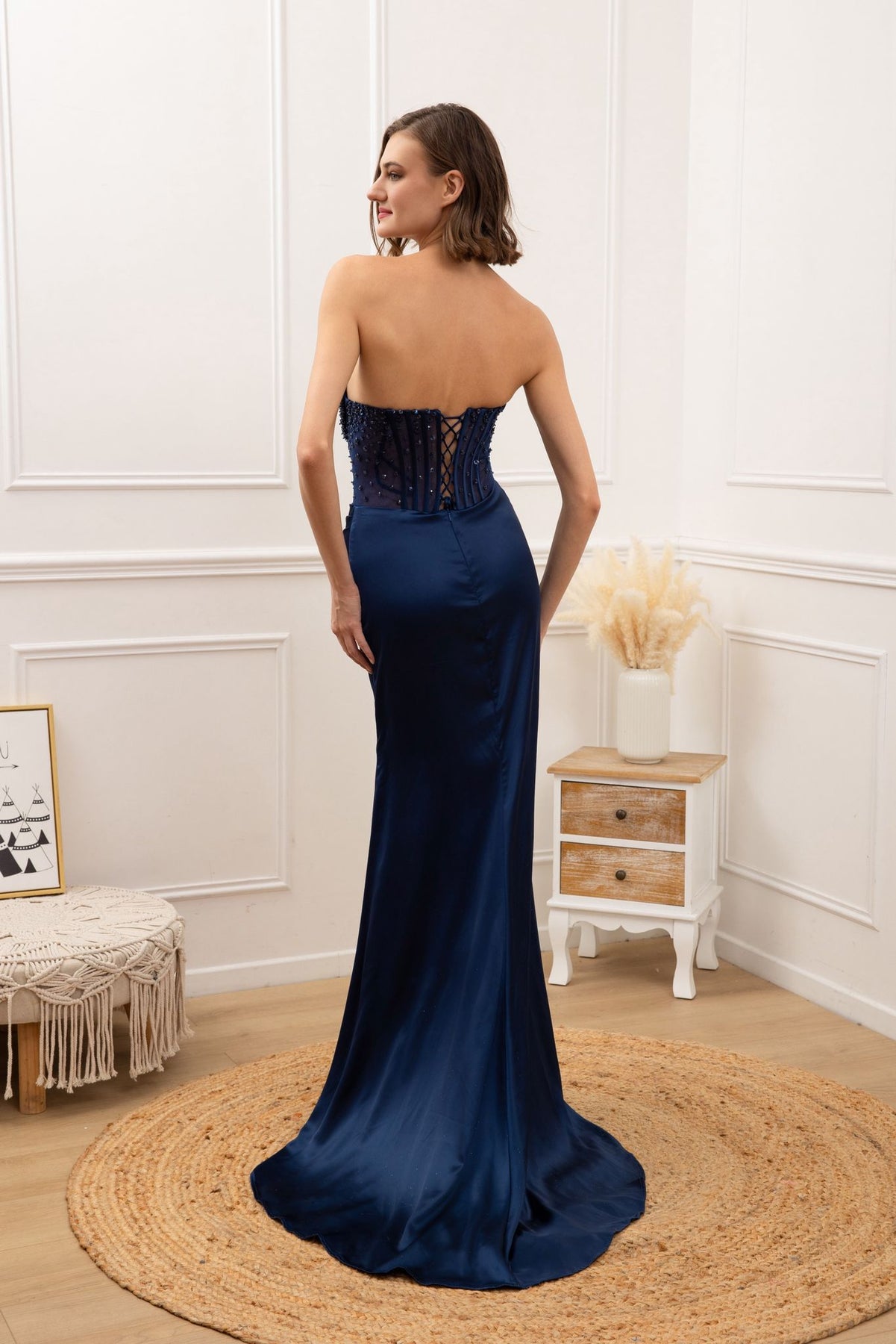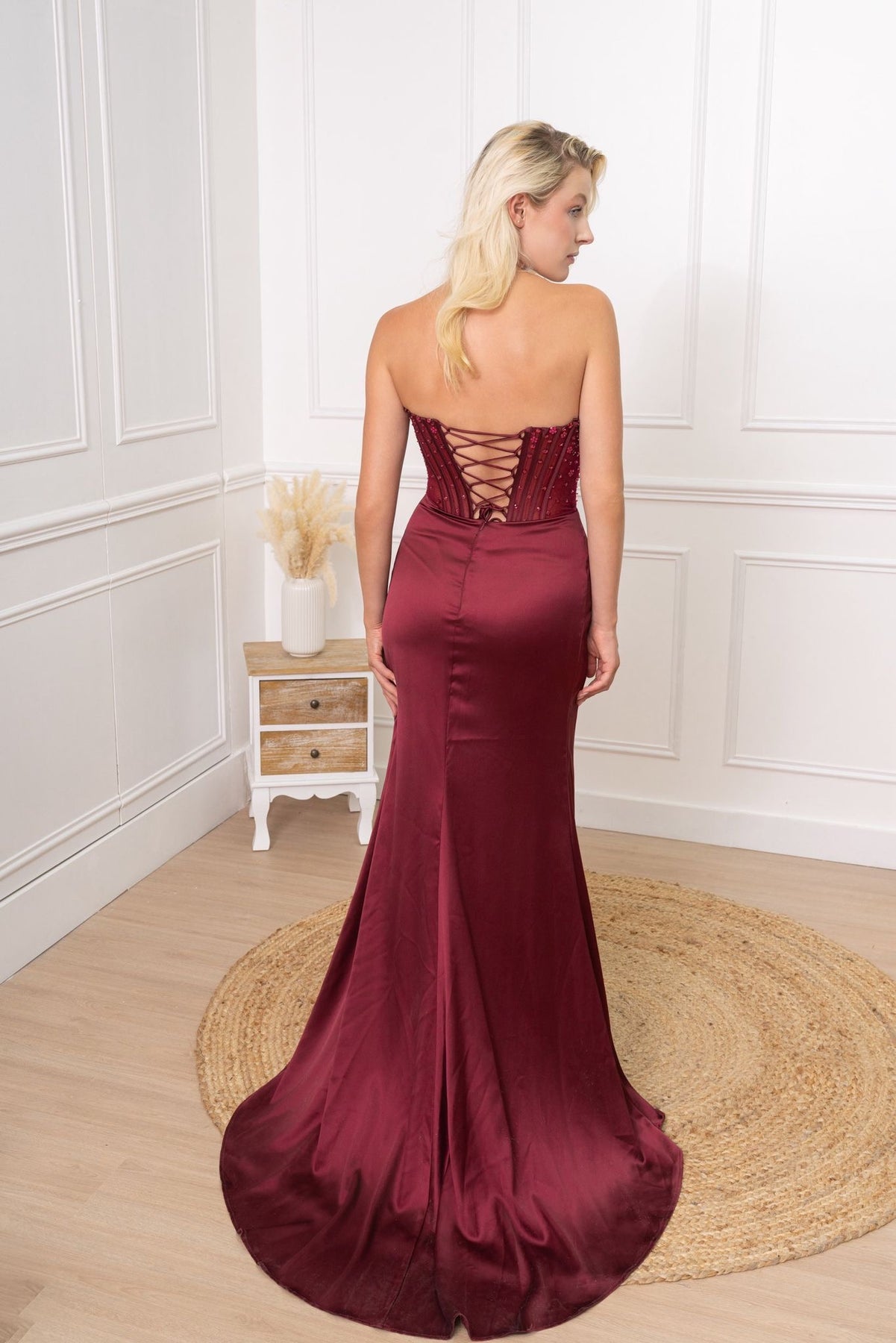 • Glanzende satijnen rok met hoge split voor een dramatische uitstraling