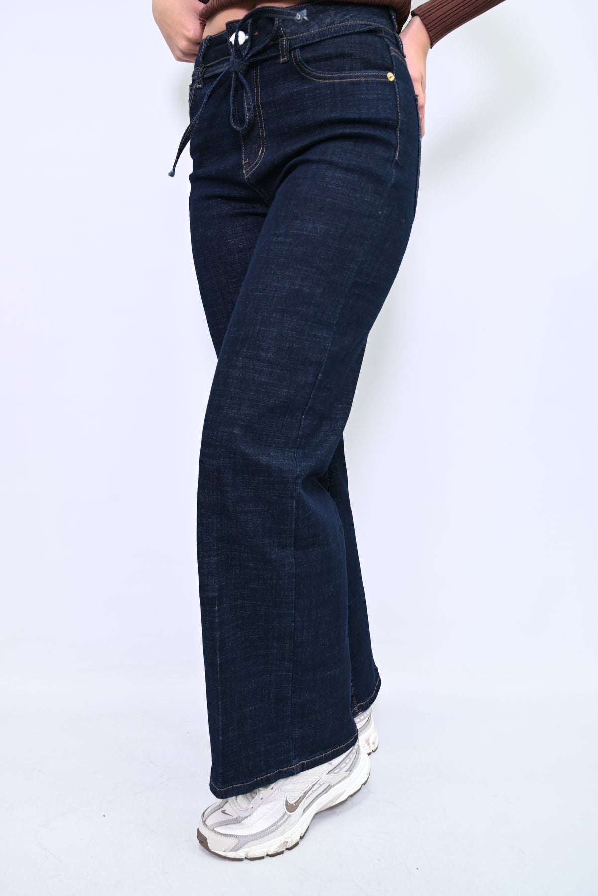 De StrideFlex Classic Jeans zijn jouw dagelijkse essential met een vleugje flair. Gemaakt van stevig denim met een subtiele stretch, bieden ze comfort en stijl in één. De licht uitlopende pijpen en klassieke five-pocket design zorgen voor een tijdloze look, terwijl de witte sneakers met grijze accenten een sportieve twist geven. Perfect voor een relaxte dag in de stad of een casual-chique moment. Combineer met een gestreepte top, glitter jacket of trenchcoat uit de collectie — en je bent klaar om te gaan.