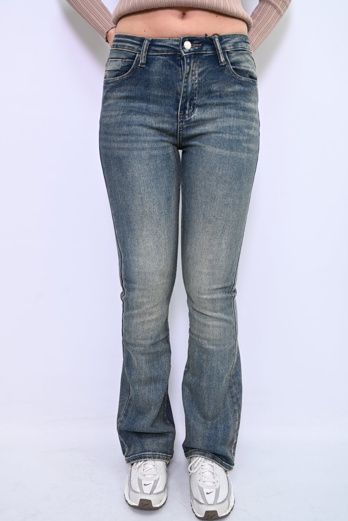 De FadeFlow Denim Fit is jouw go-to jeans voor een effortless everyday look. Met subtiele whiskering en een licht verwassen finish straalt deze denim een nonchalante coolness uit. De rechte pasvorm en zachte stretch zorgen voor ultiem draagcomfort, terwijl de witte sneakers met grijze accenten een frisse, sportieve touch geven. Combineer met een gestreepte top of een glitter jacket uit de collectie voor een look die moeiteloos van casual naar chic schakelt.