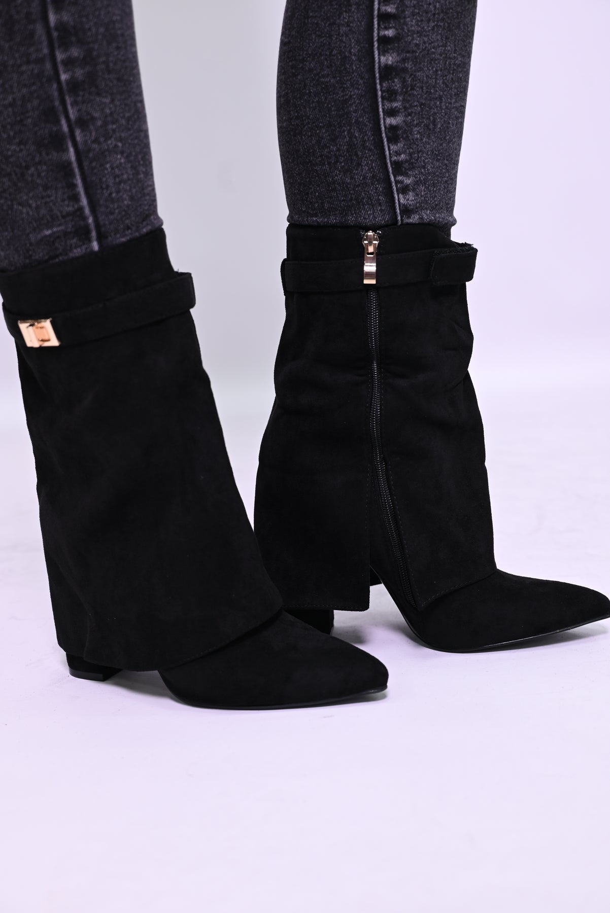 Deze verfijnde dameslaars van zacht suède is een perfecte mix van stijl en comfort. Het elegante ontwerp met een puntige neus en lage hak zorgt voor een vrouwelijke uitstraling, terwijl de goudkleurige gesp op de decoratieve band een luxe accent toevoegt. Ideaal voor zowel casual als geklede outfits.