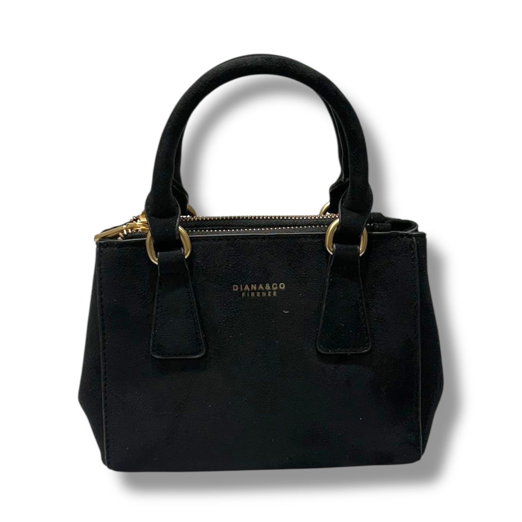 De Velvet Noir Handtas van Dianago Firenze is een toonbeeld van Italiaanse elegantie. Gemaakt van luxueus zwart suède met goudkleurige accenten, straalt deze tas klasse en verfijning uit. De gestructureerde vorm en stevige handgrepen maken haar zowel stijlvol als praktisch. Het subtiele gouden logo en de hoogwaardige rits zorgen voor een geraffineerde afwerking. Perfect voor formele gelegenheden of als chique statement bij je dagelijkse outfit.