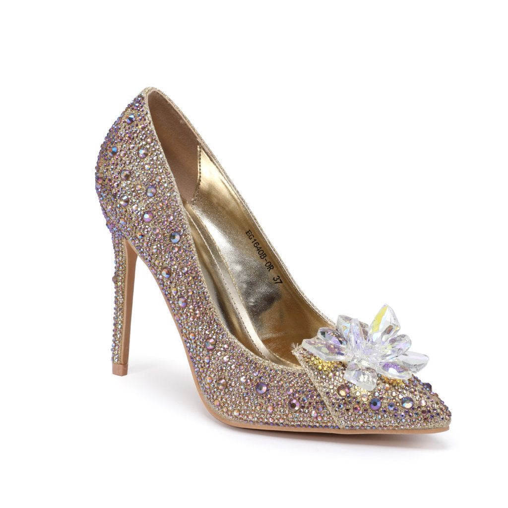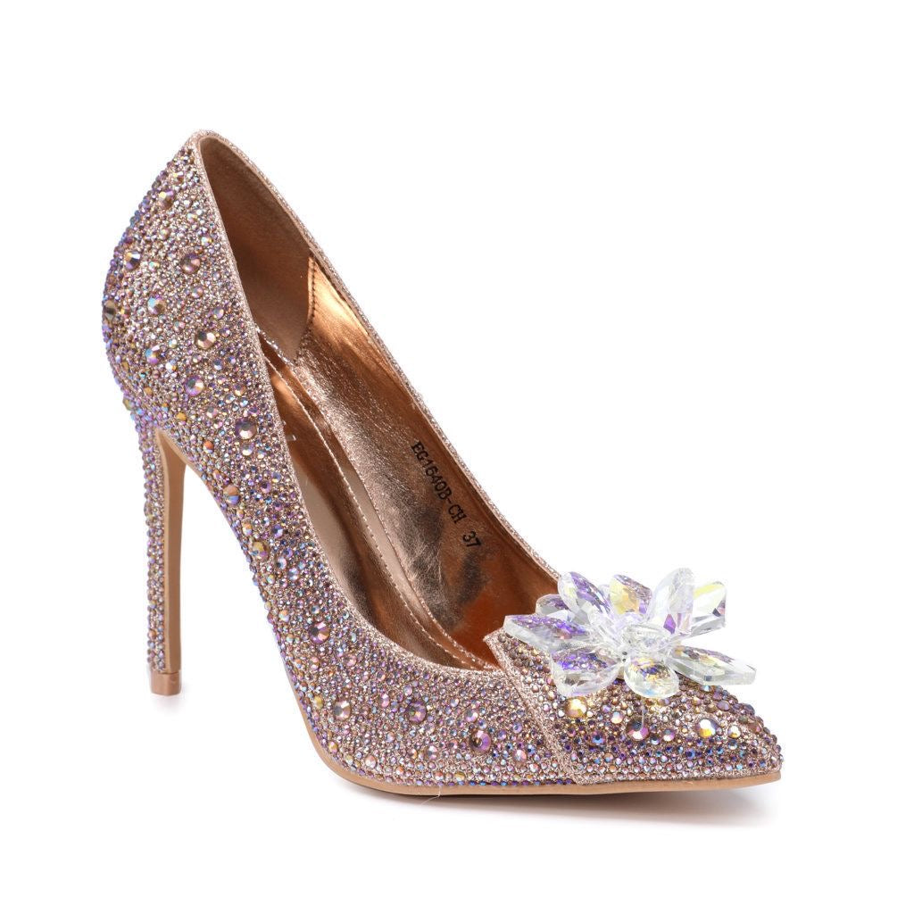 Glinsterende Luxe Hakken met Strass en Bloemdecoratie EG1640B