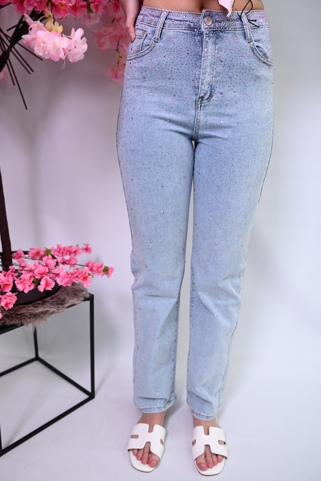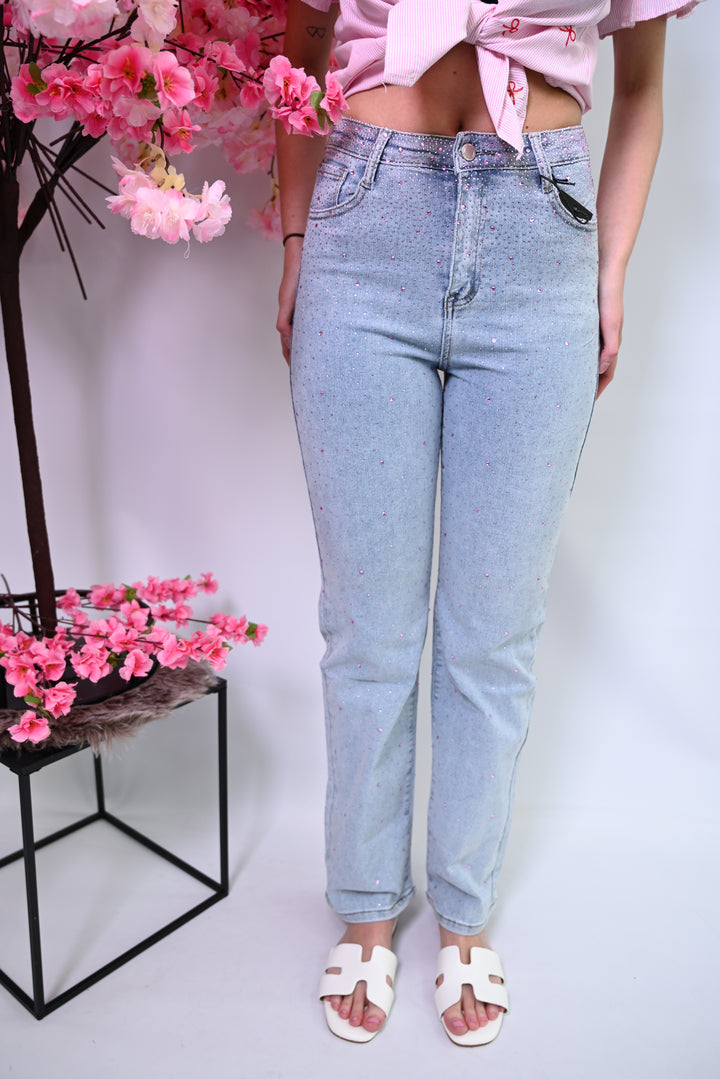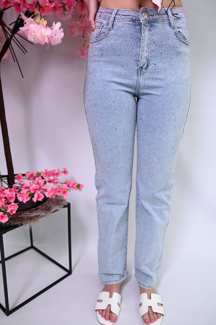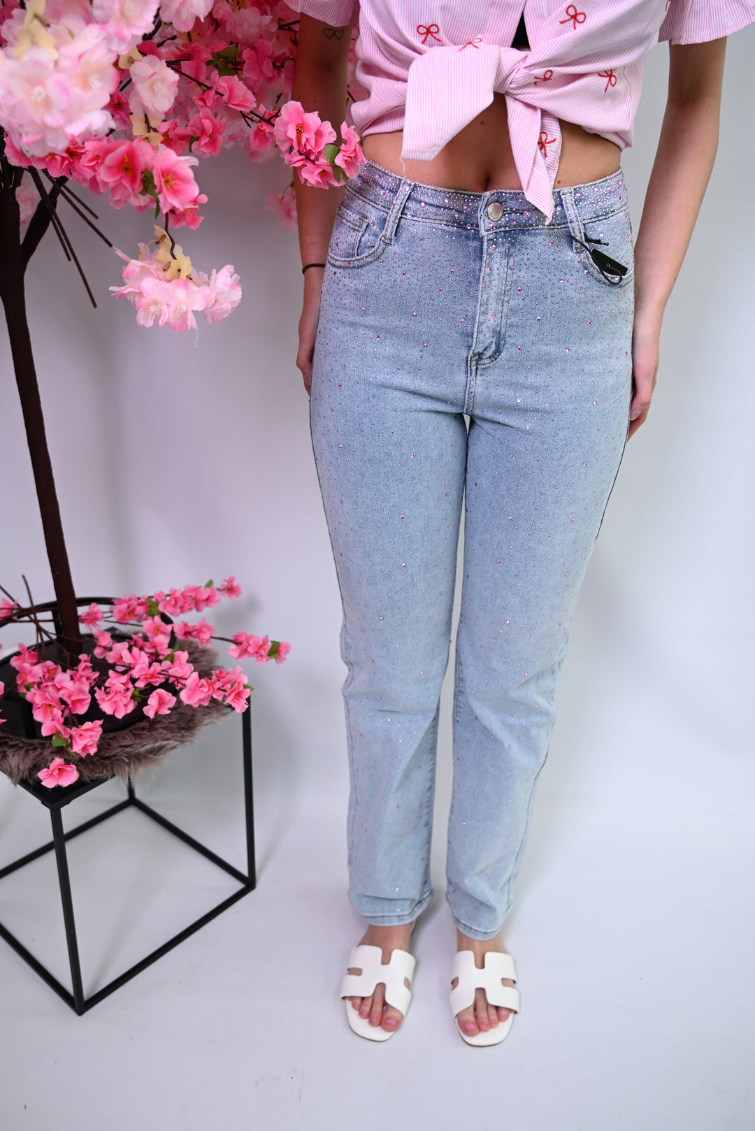 Deze stijlvolle jeans combineert een moderne pasvorm met verfijnde details. De subtiele embellishments voegen een speelse en elegante touch toe, terwijl de hoge taille zorgt voor een flatterend silhouet. Ideaal om te dragen met een blouse of een casual top voor een moeiteloze en trendy look. Perfect voor diverse gelegenheden, van casual dagen tot een chique uitstraling!