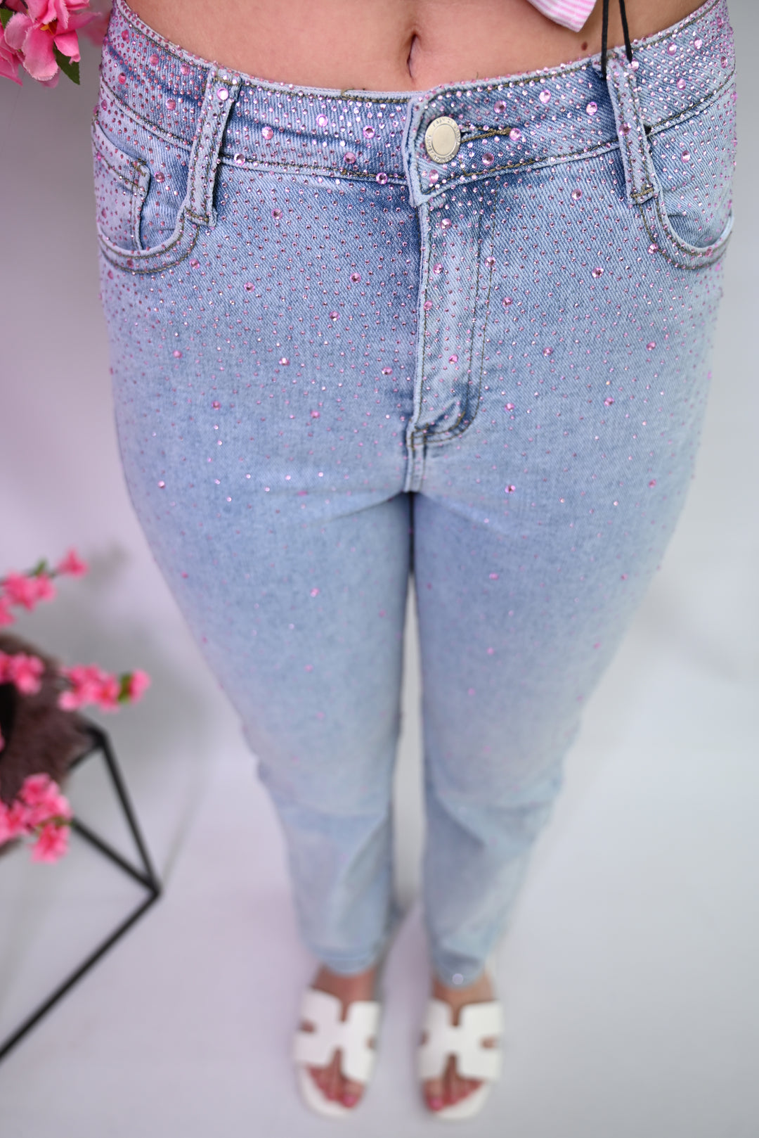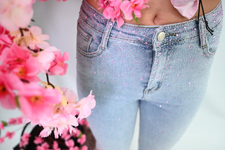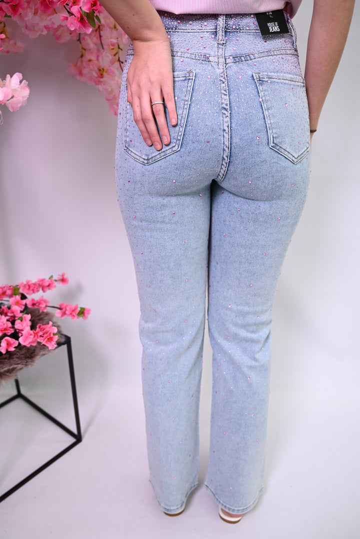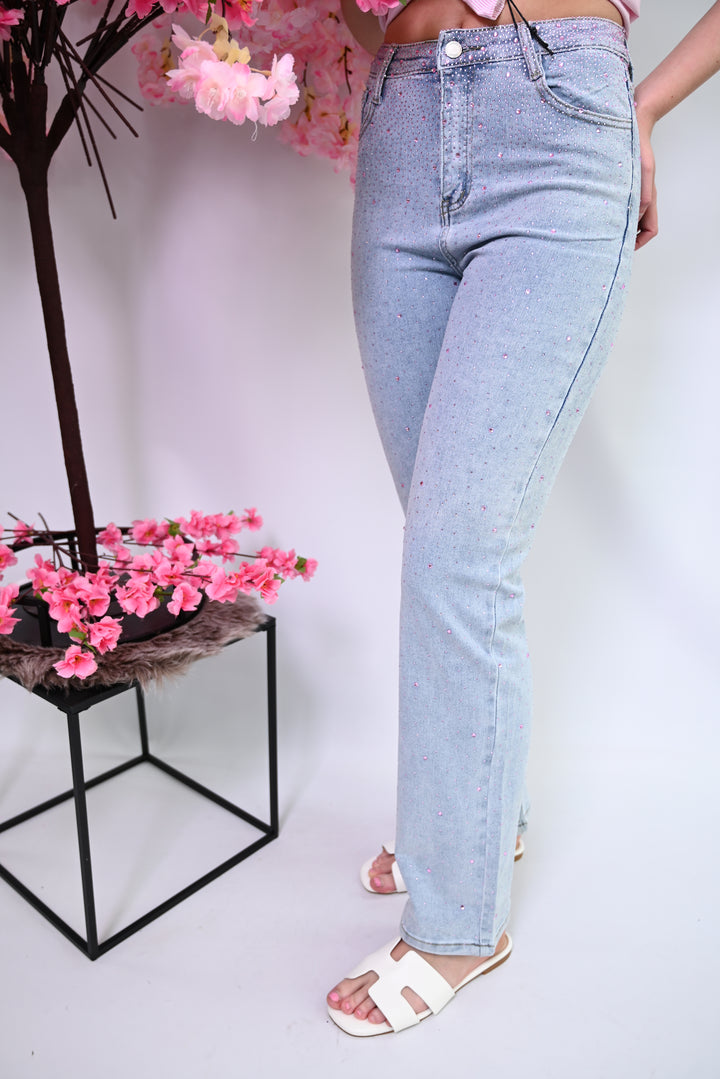 Deze stijlvolle jeans combineert een moderne pasvorm met verfijnde details. De subtiele embellishments voegen een speelse en elegante touch toe, terwijl de hoge taille zorgt voor een flatterend silhouet. Ideaal om te dragen met een blouse of een casual top voor een moeiteloze en trendy look. Perfect voor diverse gelegenheden, van casual dagen tot een chique uitstraling!